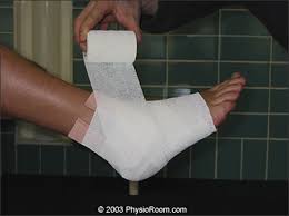 RICE処置とともによく習うと思われるのはU字のパッドを使った足首の圧迫です。もちろんアスレティックトレーニングを学ぶ学生として、私も授業で習いましたし、足首の捻挫を処置するたびによく使っていました。