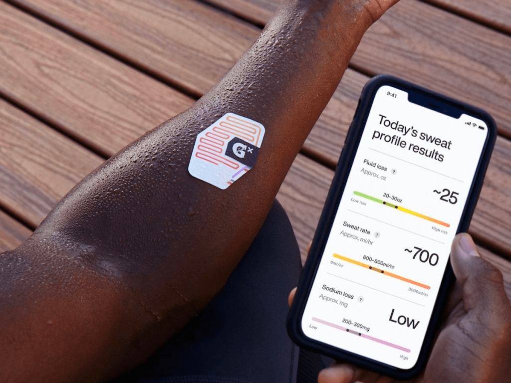 運動直前後の体重を測ることによって、脱水量を推定する方法は比較的広く使われているかと思いますが、アメリカのスポーツドリンク会社のゲータレードからは、発汗パッチ (Sweat Patch)を使って発汗率や汗に含まれる電解質を分析できる様なものも出てきているようです。