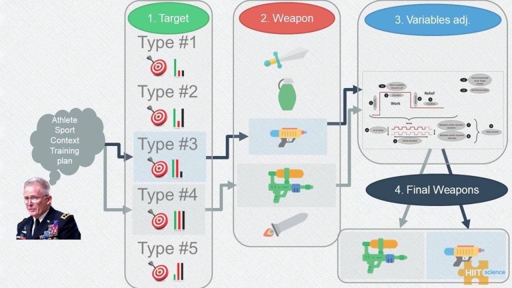 フィットネスにおいて、同じ身体的な反応をターゲットとしても、その反応を引き出す方法は色々あり、その各方法をHIIT ScienceではWeaponと呼んでいます。