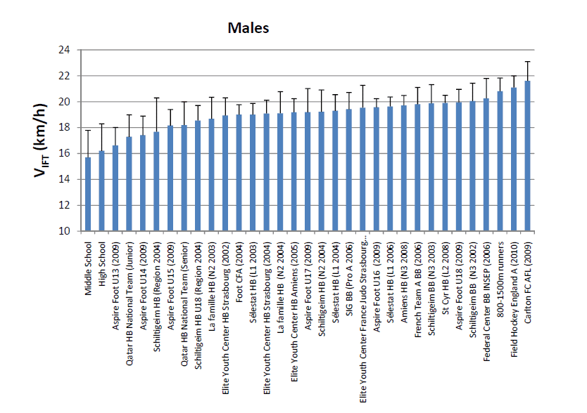 それぞれ個人のVIFTというのは実際にテストをしてみないとわからないのですが、Science for Sportsというサイトがまとめてくれている男子アスリートの値は次の通りです。